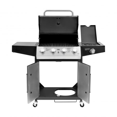 Grill gazowy o dużej mocy 12 kW z 4 palnikami głównymi i palnikiem bocznym umożliwia wygodne przygotowanie wielu potraw jednocześnie....